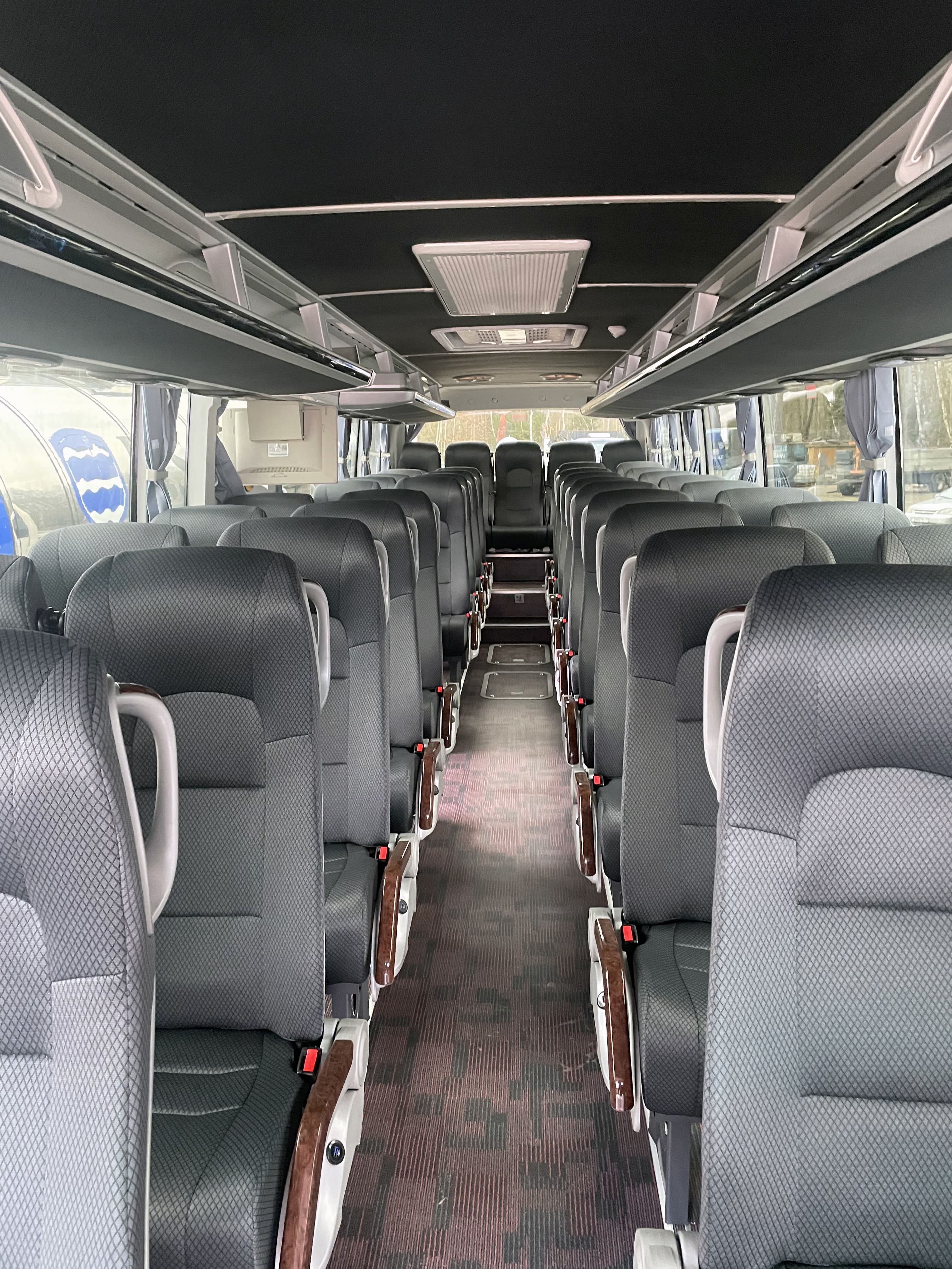 износоустойчивое покрытие пола, цвет обивки сидений, шторок, интерьера - по заказу клиента, 2 комплекта огнетушителей по 4 кг в салоне, подсветка номеров сидений, вместительные багажные полки, два ящика для хранения личных вещей в салоне под замком, |